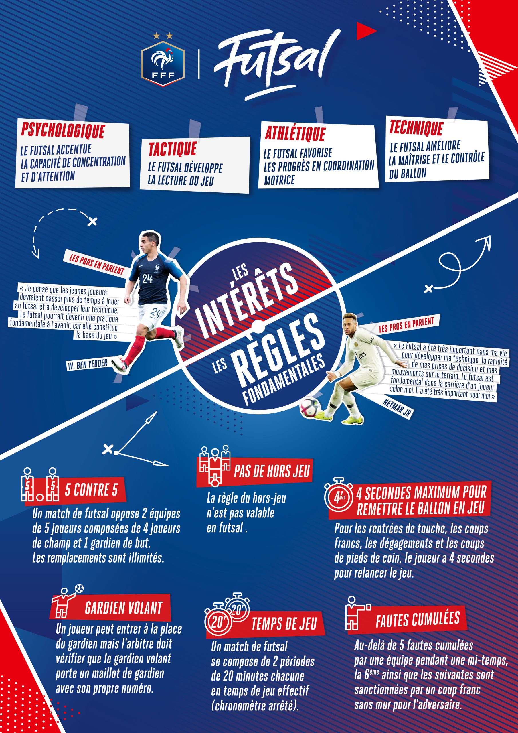 Pratique ludique et complémentaire du football, le FUTSAL s’adresse à tous les pratiquants, les jeunes comme les adultes, et peut se pratiquer à tous les moments de la saison.