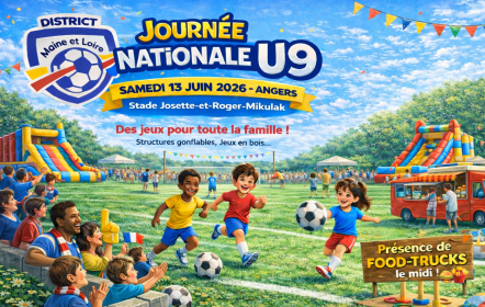 Le District de Football de Maine-et-Loire organise la Journée Nationale U9 le samedi 13 juin 2026 au Stade Josette-et-Roger-Mikulak à Angers.