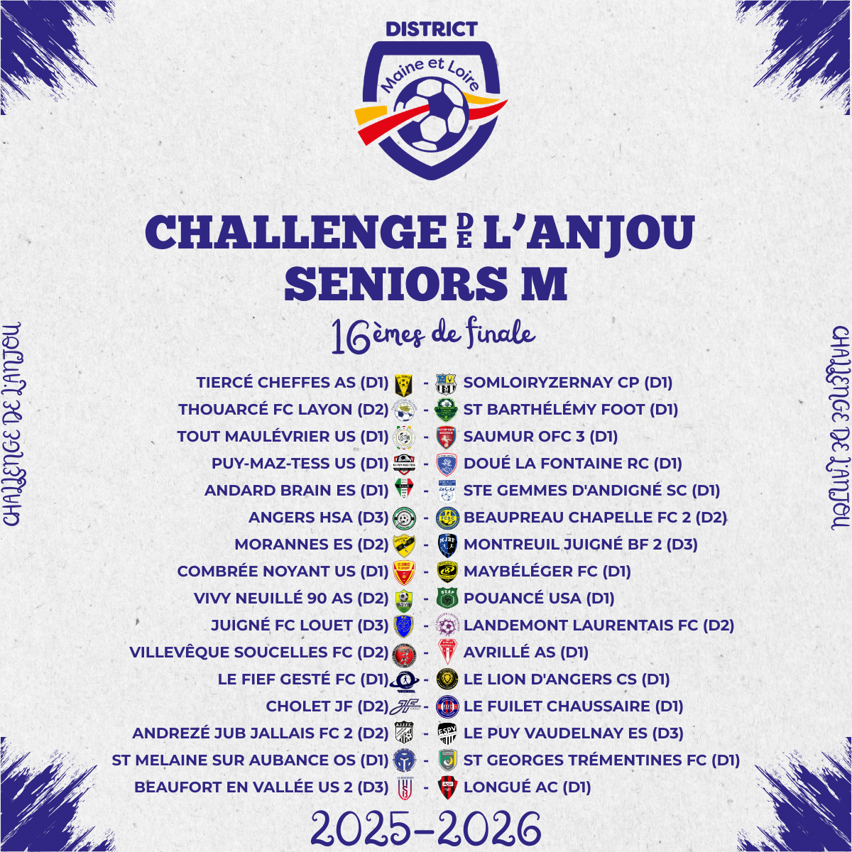 - 16èmes de finale du Challenge de l’Anjou Seniors M