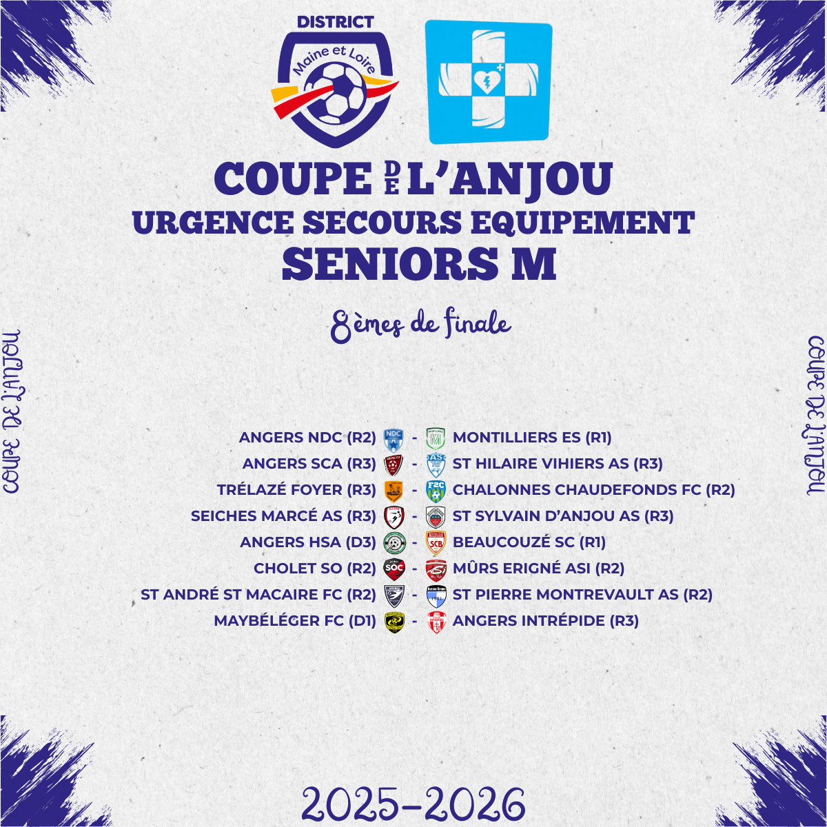 - 8èmes de finale de la Coupe de l’Anjou Urgence Secours Équipement Seniors M