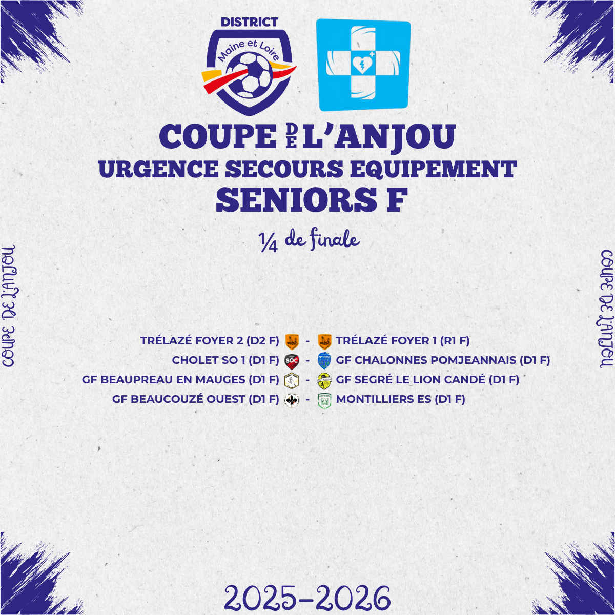 - 1/4 de finale de la Coupe de l’Anjou Urgence Secours Équipement Seniors F